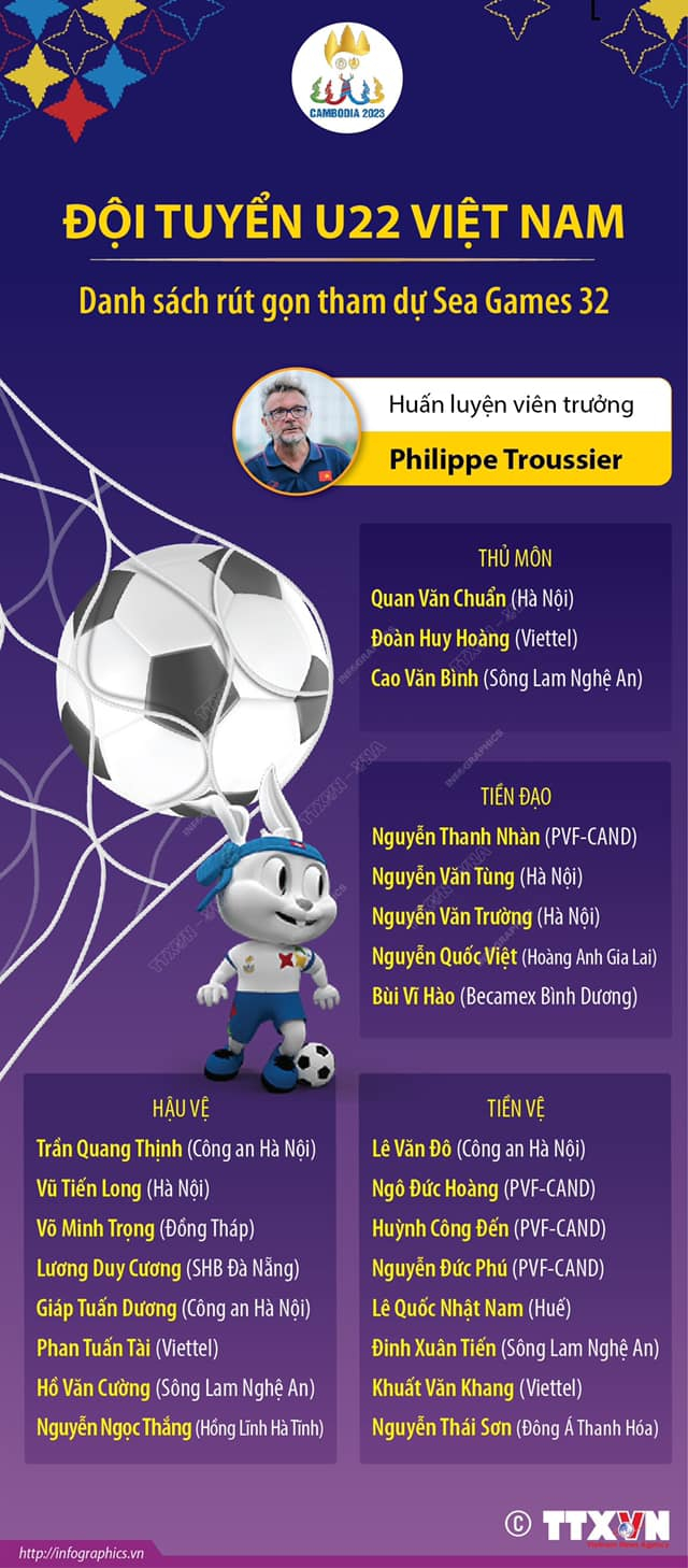 Danh sách rút gọn của U22 Việt Nam dự SEA Games 32