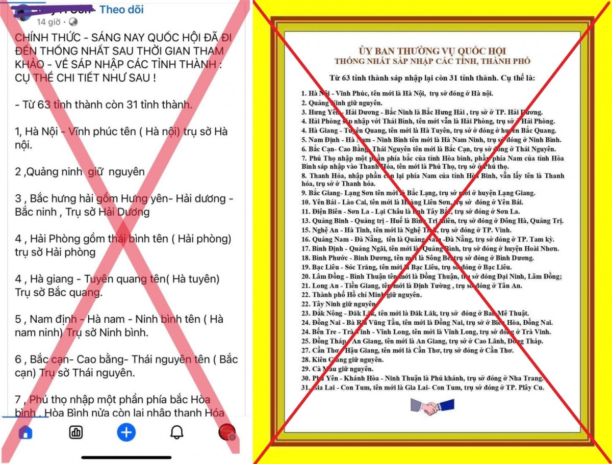 Danh sách sáp nhập các tỉnh thành lan truyền trên mạng là tin giả