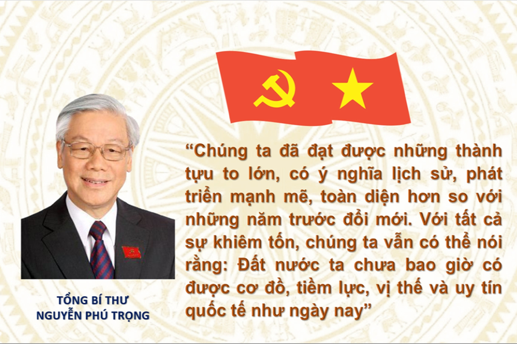 57 năm đứng trong hàng ngũ của Đảng, Đồng chí Tổng Bí thư Nguyễn Phú Trọng đã có nhiều cống hiến to lớn cho sự nghiệp cách mạng vẻ vang của Đảng và dân tộc. Đặc biệt, trong công cuộc đổi mới đất nước, Đồng chí để lại nhiều dấu ấn sâu đậm trong công tác tư tưởng của Đảng, góp phần hoạch định chủ trương, đường lối ở tầm chiến lược; xây dựng, hoàn thiện lý luận về đường lối đổi mới của Đảng; đưa đất nước ta đạt được những thành tựu to lớn, có ý nghĩa lịch sử.
