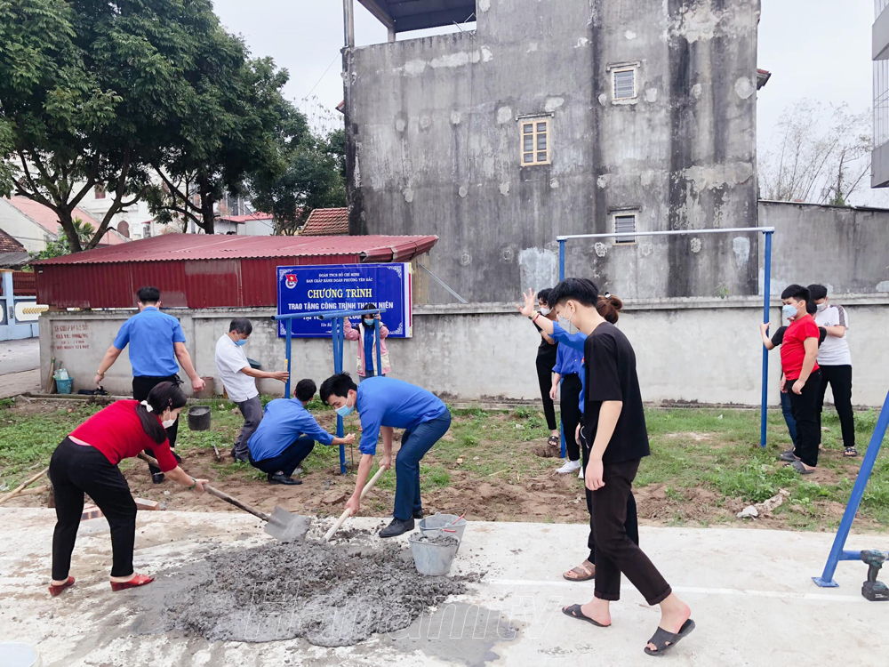 Đoàn viên thanh niên phường Yên Bắc, thị xã Duy Tiên chung tay xây dựng khu vui chơi cho trẻ em