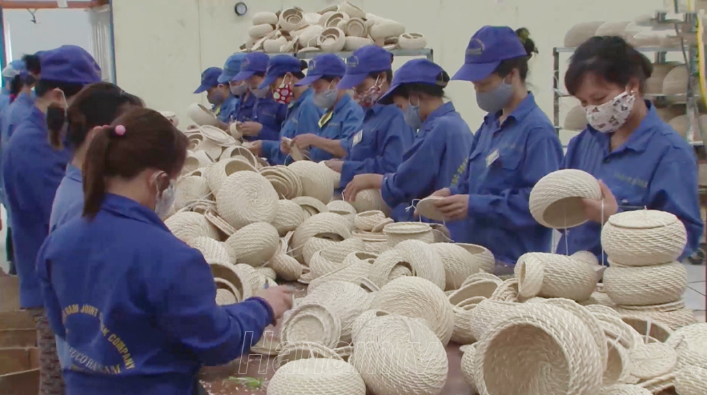 Sản xuất hàng thủ công mỹ nghệ tại Công ty Cổ phần Ngọc Sơn Hà Nam (xã Trung Lương, huyện Bình Lục).