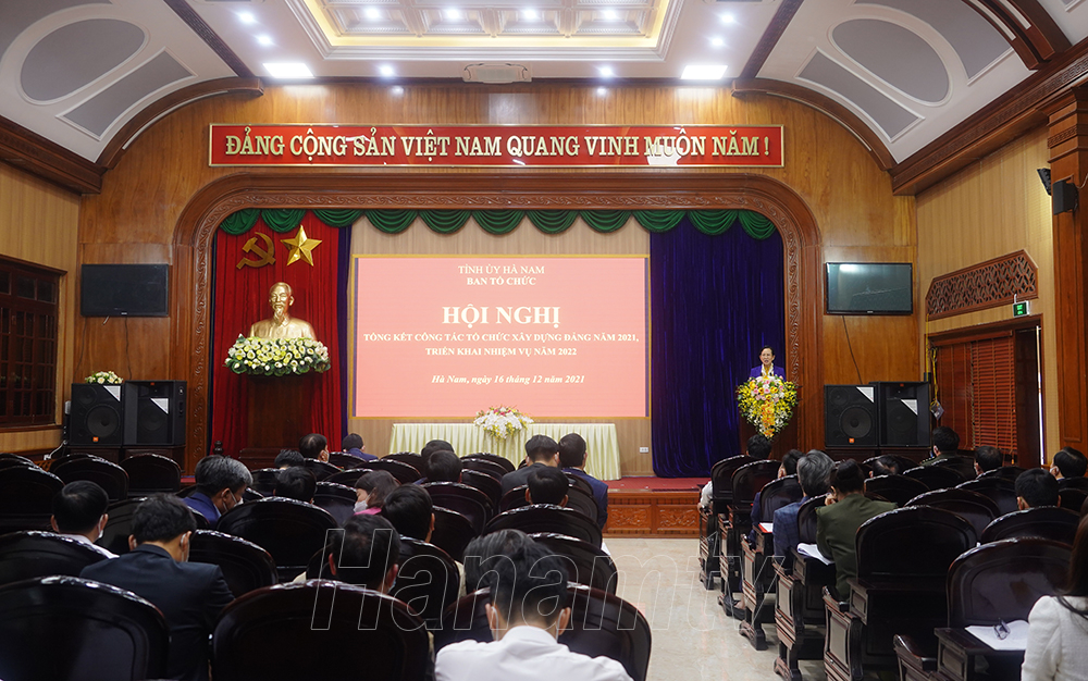 Phát biểu chỉ đạo tại hội nghị, đồng chí Bí thư Tỉnh ủy Lê Thị Thủy ghi nhận, biểu dương những nỗ lực, cố gắng, kết quả của ngành Tổ chức xây dựng Đảng Hà Nam đã đạt được trong năm 2021. Bước sang năm 2022, nhiệm vụ đặt ra đối với ngành tổ chức xây dựng Đảng là rất nặng nề; đòi hỏi toàn ngành Tổ chức xây dựng Đảng phải tập trung nâng cao chất lượng, hiệu quả thực hiện các nhiệm vụ được giao, trọng tâm là: Tiếp tục tham mưu thực hiện nghiêm túc, hiệu quả các nghị quyết, chỉ thị, quy định, kết luận của TW, của Tỉnh ủy về công tác tổ chức xây dựng Đảng; nhất là Kết luận Hội nghị lần thứ tư Ban Chấp hành Trung ương Đảng khóa 13 về đẩy mạnh xây dựng, chỉnh đốn Đảng và hệ thống chính trị; kiên quyết ngăn chặn, đẩy lùi sự suy thoái về tư tưởng chính trị, đạo đức, lối sống, những biểu hiện “tự diễn biến”, “tự chuyển hóa” trong nội bộ gắn với thực hiện Chỉ thị số 05 “về đẩy mạnh học tập và làm theo tư tưởng, đạo đức, phong cách Hồ Chí Minh” và các quy định về nêu gương.