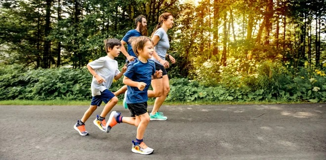 Chạy bộ là môn thể thao phổ biến mà các thành viên trong gia đình đều có thể tham gia.