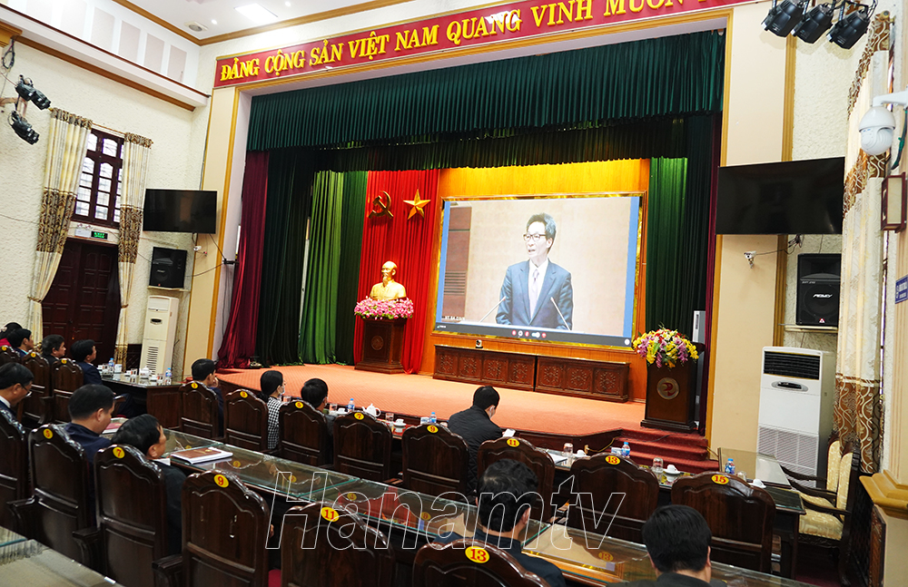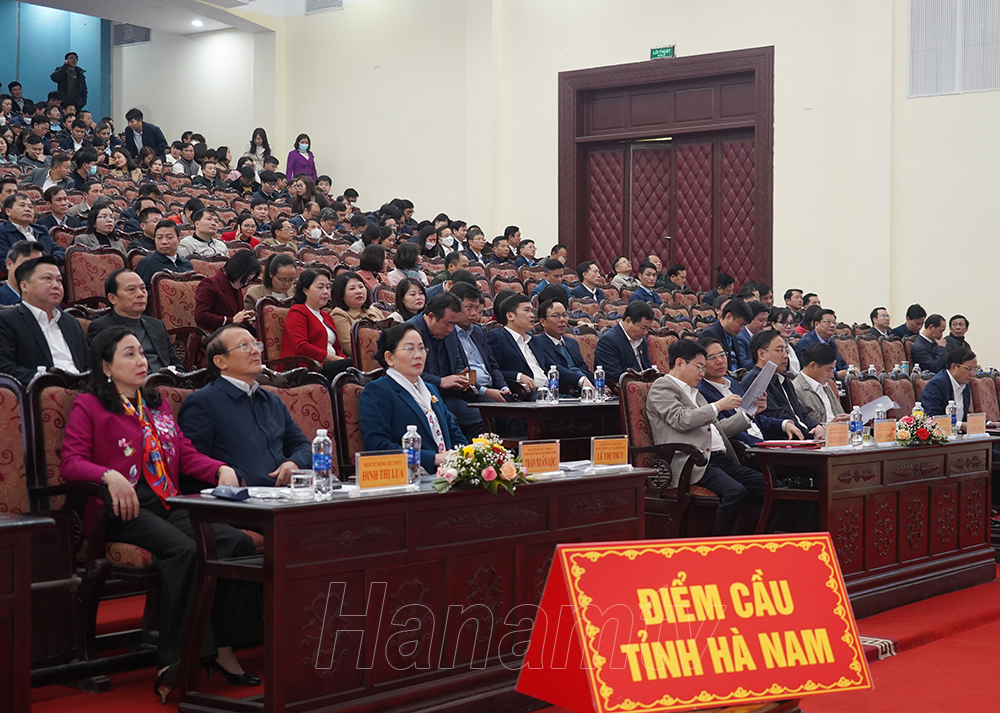 Các đại biểu dự hội nghị tại điểm cầu Nhà Văn hóa Trung tâm tỉnh Hà Nam