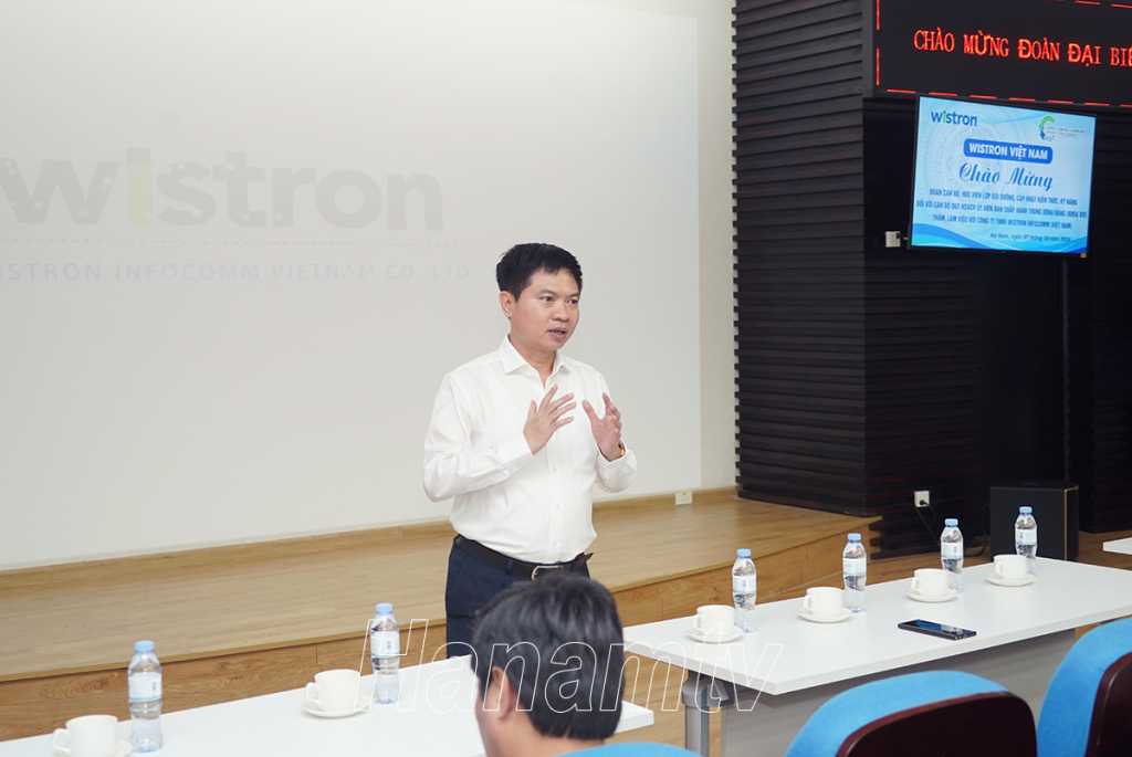 Trong chương trình nghiên cứu thực tế tại tỉnh Hà Nam, chiều 7/10, Đoàn cán bộ, học viên Lớp bồi dưỡng, cập nhật kiến thức, kỹ năng đối với cán bộ quy hoạch Ủy viên Ban Chấp hành Trung ương Đảng khóa XIV đã đến tham quan, tìm hiểu thực tiễn hoạt động tại Công ty TNHH Wistron Infocomm (Việt Nam) tại KCN Đồng Văn III (thị xã Duy Tiên). Tiếp và làm việc với Đoàn có đồng chí Trương Quốc Huy, Phó Bí thư Tỉnh ủy, Chủ tịch UBND tỉnh, Trưởng Đoàn ĐBQH tỉnh; đồng chí Trần Xuân Dưỡng, Tỉnh ủy viên, Phó Chủ tịch UBND tỉnh.