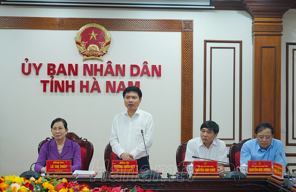 Tại hội nghị, đồng chí Chủ tịch UBND tỉnh Trương Quốc Huy đã phát biểu làm rõ những chính sách ưu tiên cho hoạt động KH&CN của tỉnh, đồng thời cũng đề xuất kiến nghị với Bộ trưởng Bộ KH&CN, cùng đoàn công tác tiếp tục xem xét quan tâm, tạo điều kiện, hỗ trợ tỉnh về KH&CN, đổi mới sáng tạo; đặc biệt là giúp đỡ tỉnh Hà Nam hoàn thiện hồ sơ, sớm trình Thủ tướng Chính phủ phê duyệt Đề án thành lập Khu CNC.