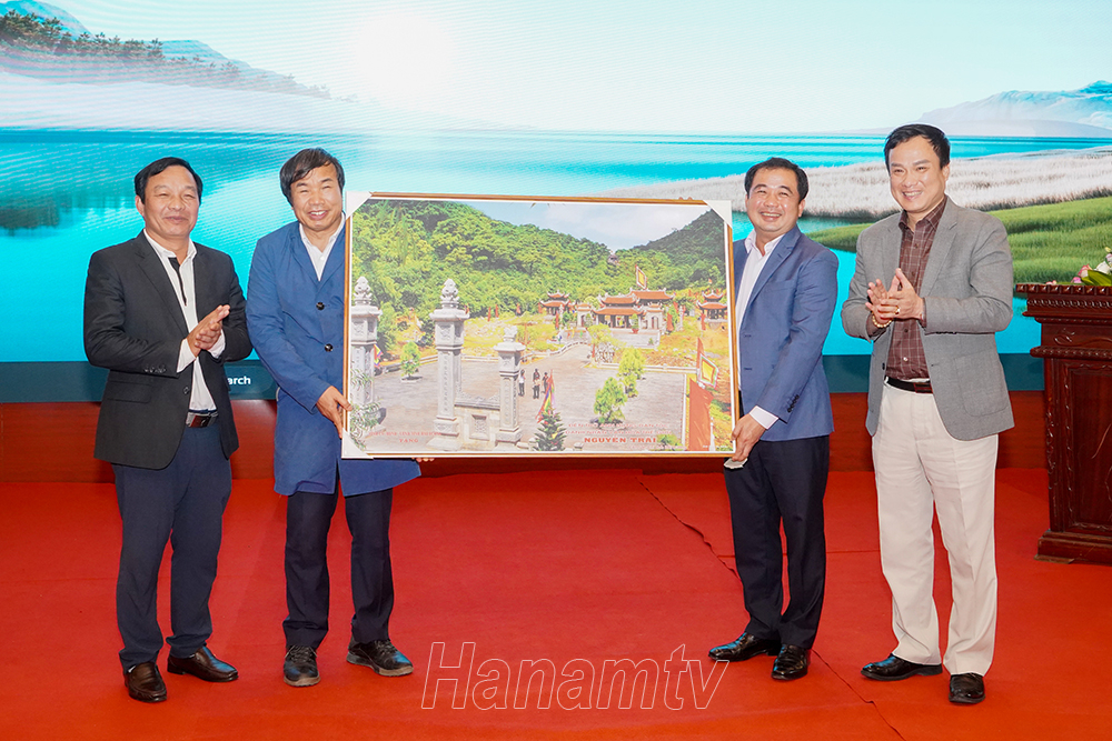 Đồng chí Trần Đức Thắng, Bí thư Tỉnh ủy Hải Dương tặng doanh nghiệp xây dựng Xuân Trường bức tranh Khu di tích Côn Sơn-Kiếp Bạc.