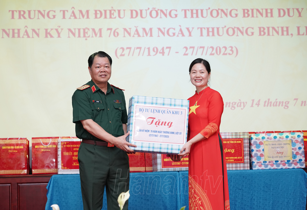 Nhân dịp này, Tỉnh ủy - HĐND - UBND - Ủy ban MTTQ tỉnh Hà Nam, Bộ tư lệnh Quân khu 3, Bộ chỉ huy Quân sự tỉnh Hà Nam và Thị xã Duy Tiên đã tặng Trung tâm và các thương binh, bệnh binh nhiều món quà ý nghĩa, thiết thực.