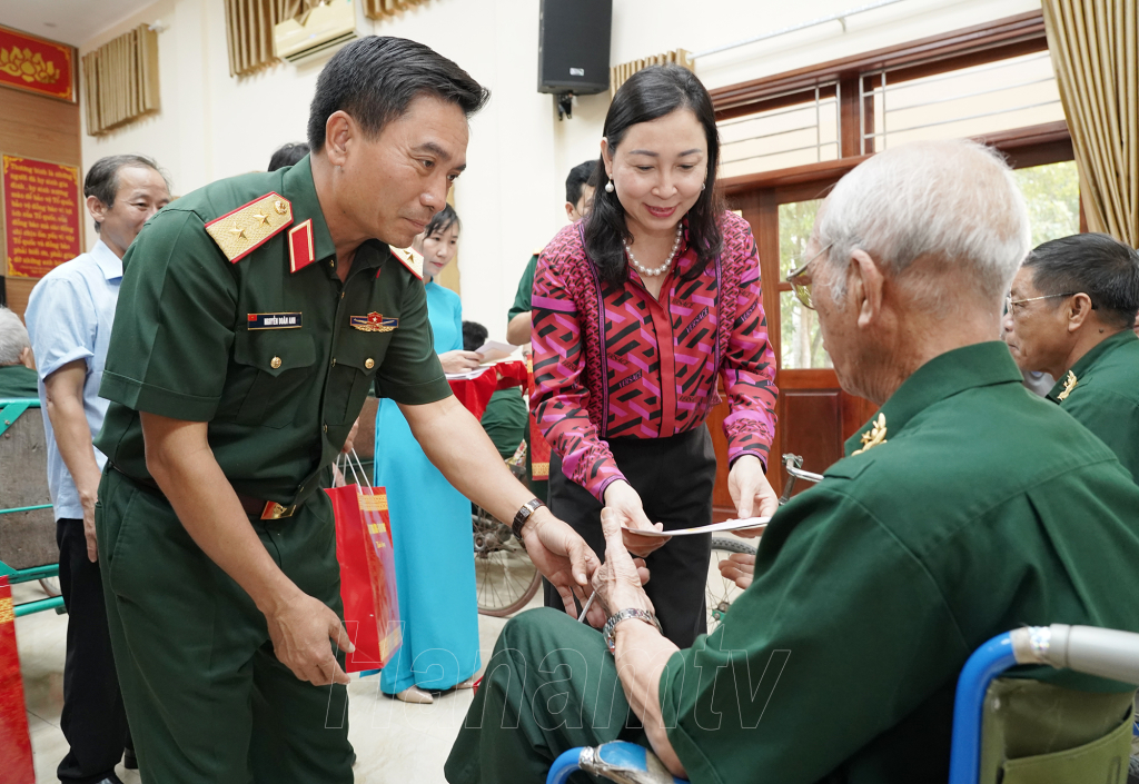 Trung tướng Nguyễn Doãn Anh, Ủy viên BCH Trung ương Đảng, Phó Tổng Tham mưu trưởng Quân đội Nhân dân Việt Nam và đồng chí Phó Bí thư Thường trực Tỉnh ủy Hà Nam Đinh Thị Lụa tặng quà cho các thương, bệnh binh đang được chăm sóc, nuôi dưỡng tại Trung tâm điều dưỡng thương binh Duy Tiên