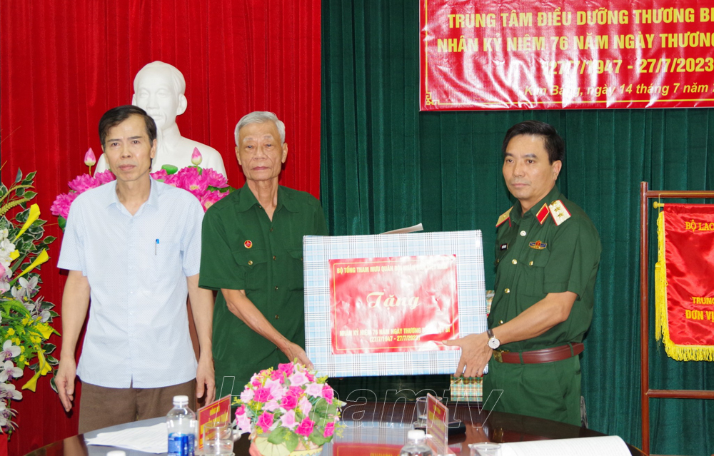 Cũng trong chiều nay (14/7), đoàn công tác của Quân ủy Trung ương, Bộ Quốc phòng do Trung tướng Nguyễn Doãn Anh, Ủy viên BCH Trung ương Đảng, Ủy viên Quân ủy Trung ương, Phó Tổng tham mưu trưởng Quân đội Nhân dân Việt Nam làm trưởng đoàn đã tới thăm, tặng quà các thương, bệnh binh tại Trung tâm điều dưỡng thương binh Kim Bảng.