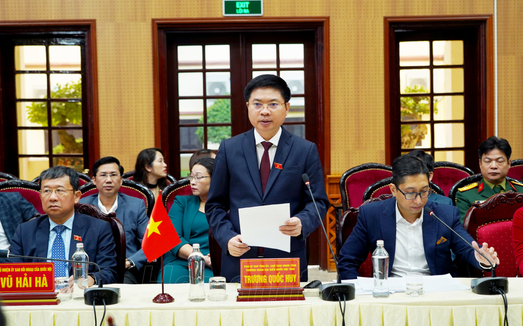 Đồng chí Trương Quốc Huy, Phó Bí thư Tỉnh ủy, Chủ tịch UBND tỉnh, Trưởng đoàn ĐBQH tỉnh phát biểu tại buổi tiếp
