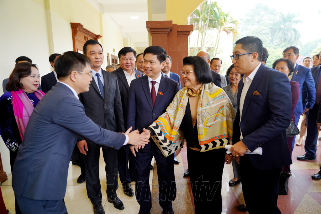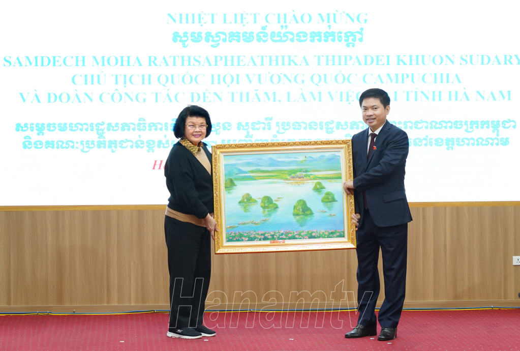 Chủ tịch Quốc hội Vương quốc Campuchia Samdech Khuon Sudary cảm ơn sự đón tiếp chu đáo, trọng thị của tỉnh Hà Nam dành cho đoàn. Đồng thời, bày tỏ ấn tượng và chúc mừng những thành tựu Hà Nam đạt được thời gian qua.