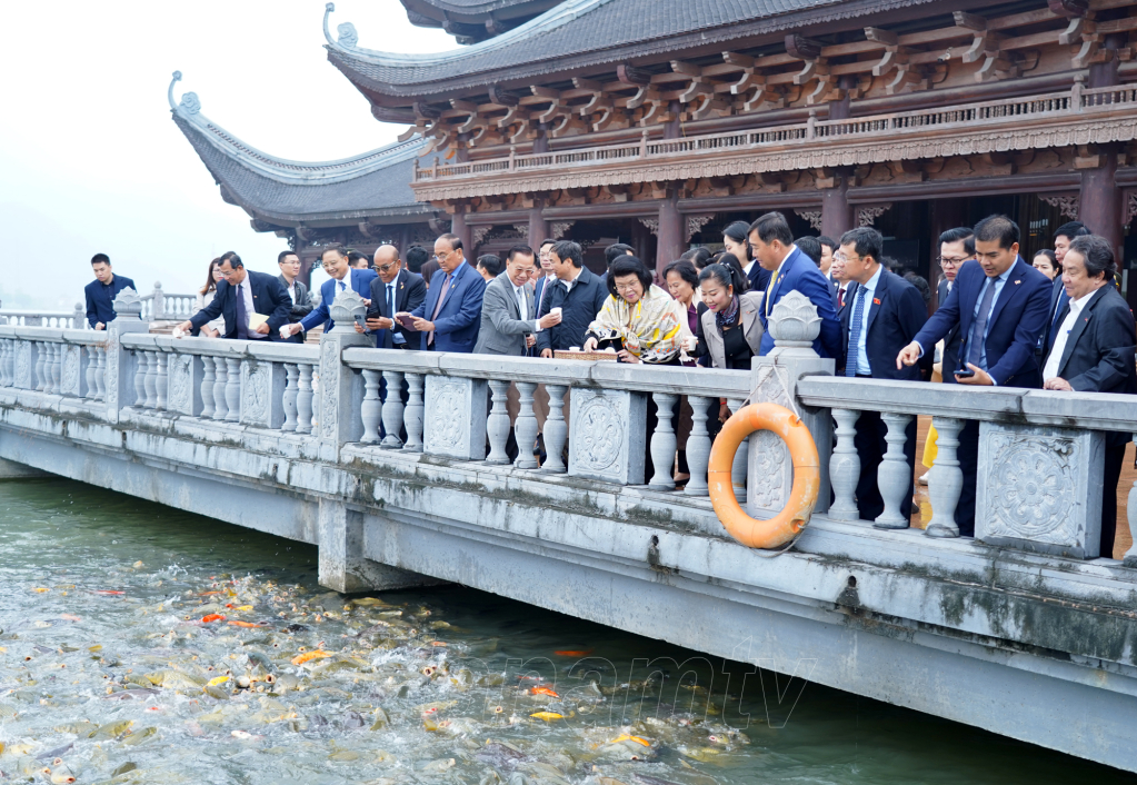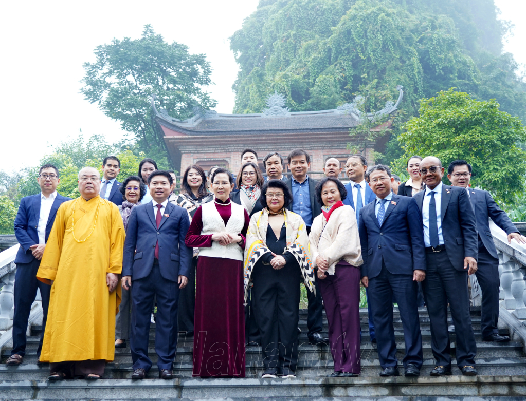 Nhân dịp này, Đoàn Đại biểu cấp cao Quốc hội Vương quốc Campuchia đã đến dâng hương và trồng cây lưu niệm tại khuôn viên Khu du lịch Quốc gia Tam Chúc, huyện Kim Bảng, tỉnh Hà Nam.