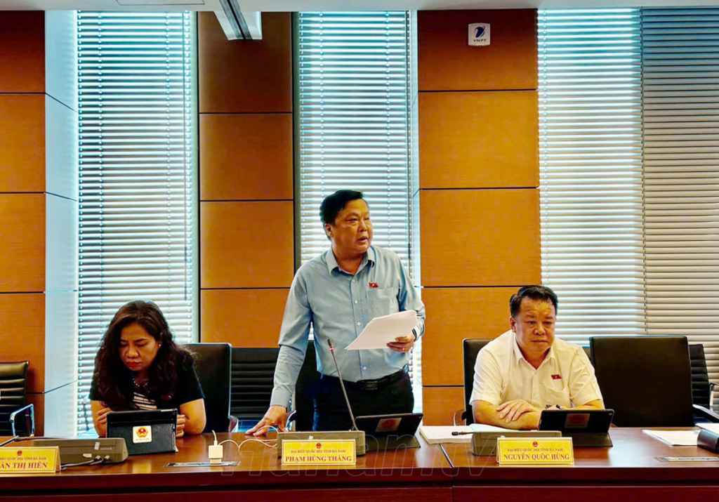 Đại biểu Phạm Hùng Thắng, Phó trưởng Đoàn ĐBQH tỉnh Hà Nam phát biểu tại phiên thảo luận tổ.