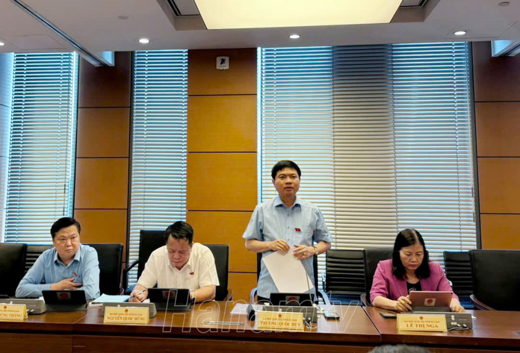 Đồng chí Trương Quốc Huy, Bí thư Tỉnh ủy, Chủ tịch UBND tỉnh, Trưởng Đoàn ĐBQH Hà Nam phát biểu tại phiên thảo luận tổ.