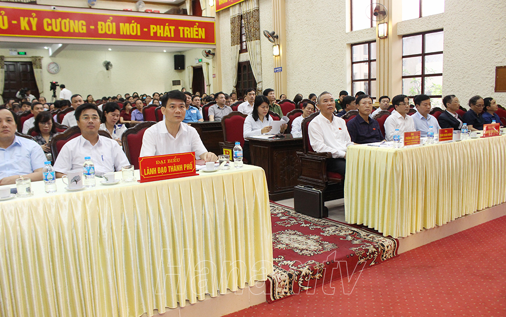 Các đại biểu dự hội nghị tiếp xúc cử tri tại thành phố Phủ Lý