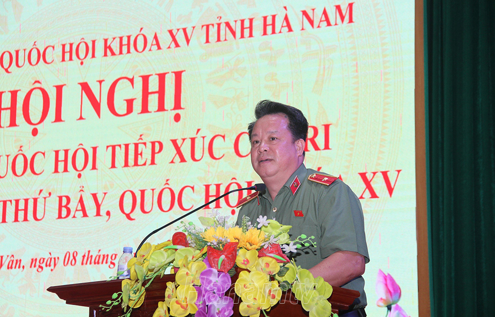 Thiếu tướng Nguyễn Quốc Hùng, Ủy viên thường trực Ủy ban Quốc phòng và An ninh của Quốc hội, Đoàn ĐBQH tỉnh Hà Nam thông báo dự kiến nội dung, chương trình Kỳ họp thứ 7, Quốc hội khóa XV.
