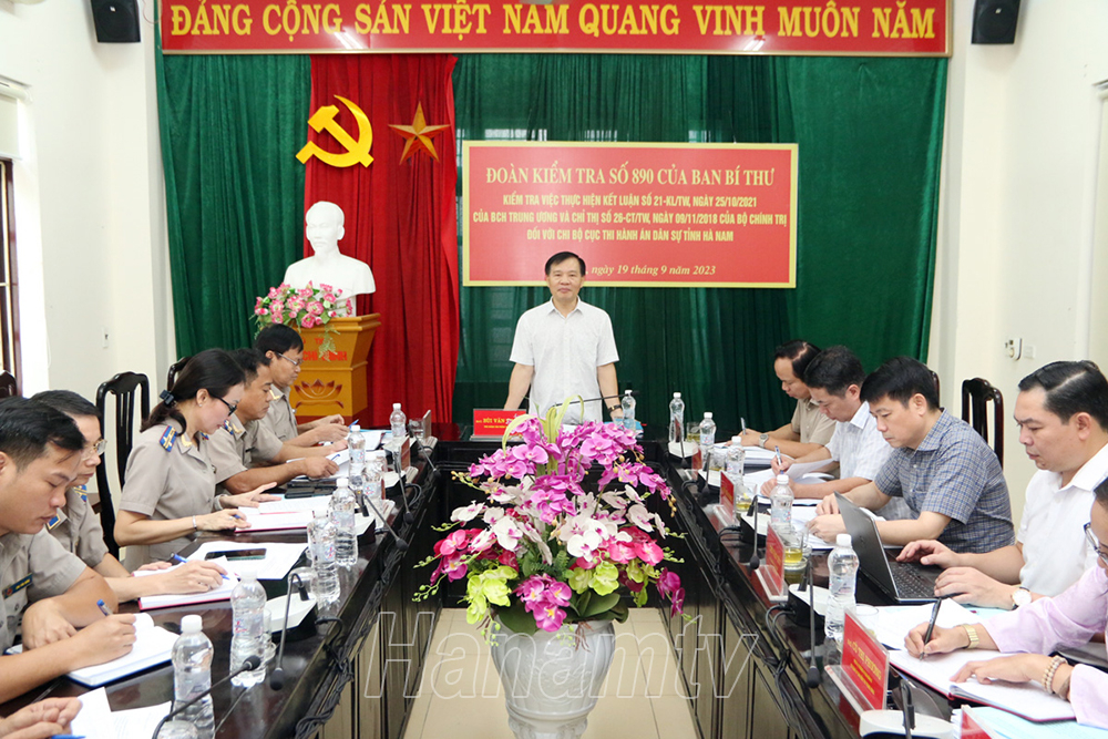 Đoàn kiểm tra số 890 của Ban Bí thư làm việc với Chi bộ Cục Thi hành án dân sự tỉnh Hà Nam