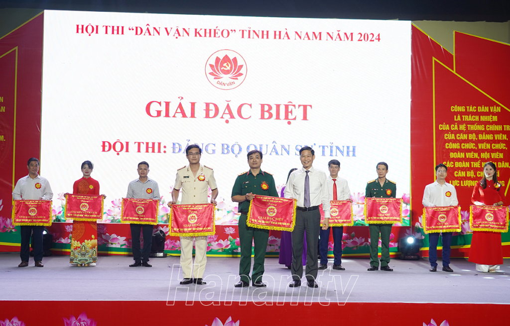 Sau một ngày diễn ra sôi nổi, Hội thi “Dân vận khéo” tỉnh Hà Nam năm 2024 đã thành công tốt đẹp. Ban Tổ chức đã trao giải cho các đội thi tham dự. Với sự thể hiện xuất sắc qua các phần thi, Đội thi của Đảng bộ Quân sự tỉnh đã xuất sắc giành giải Đặc biệt của Hội thi năm nay.
