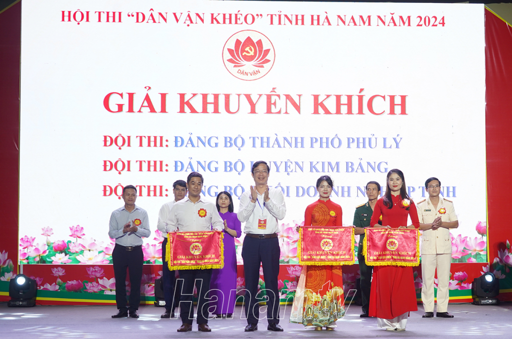 Dự lễ bế mạc và trao giải hội thi có các đồng chí: Đỗ Văn Phới, Phó trưởng Ban Dân vận Trung ương; Đinh Thị Lụa, Phó Bí thư Thường trực Tỉnh ủy, Trưởng Ban Chỉ đạo phong trào thi đua “Dân vận khéo” tỉnh, Trưởng Ban Tổ chức Hội thi “Dân vận khéo” tỉnh Hà Nam năm 2024; Nguyễn Anh Chức, Ủy viên BTV Tỉnh ủy, Phó Chủ tịch Thường trực UBND tỉnh; Nguyễn Minh Tiến, Ủy viên BTV Tỉnh ủy, Trưởng Ban Dân vận Tỉnh ủy; thành viên BCĐ phong trào thi đua “Dân vận khéo” tỉnh và đại diện thường trực các huyện, thị, thành ủy, các đảng ủy trực thuộc Tỉnh ủy…