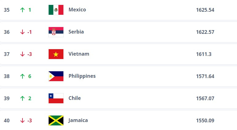 Đội tuyển nữ Việt Nam khép lại năm 2023 với thứ hạng 37 thế giới