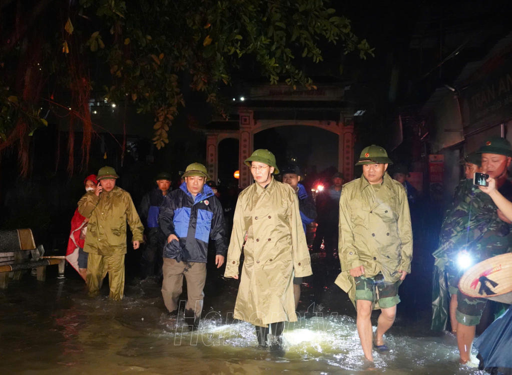 Đồng chí Bí thư Tỉnh ủy thị sát tình hình mưa lũ tại thôn Bồng Lạng, xã Thanh Nghị, Thanh Liêm ngay trong đêm 10/9