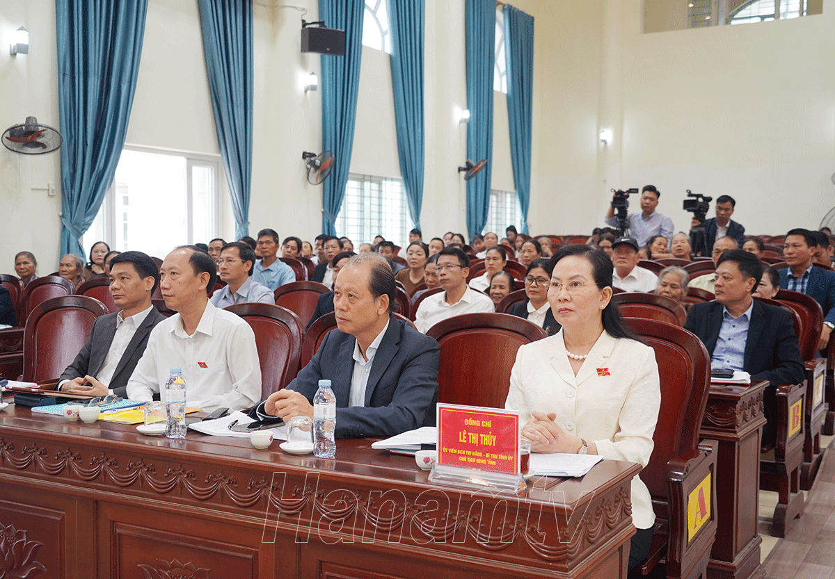 Đồng chí Lê Thị Thủy, Ủy viên Trung ương Đảng, Bí thư Tỉnh ủy, Chủ tịch HĐND tỉnh và các đại biểu HĐND tỉnh tổ Phủ Lý dự hội nghị tiếp xúc cử tri xã Tiên Tân.Các đại biểu dự hội nghị tiếp xúc cử tri.