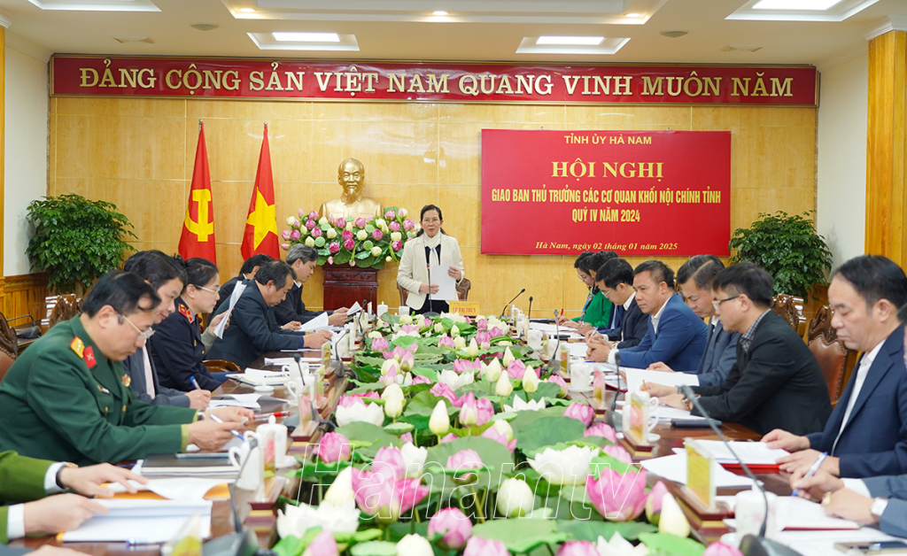 Chiều 2/1/2025, đồng chí Lê Thị Thủy, Ủy viên Trung ương Đảng, Bí thư Tỉnh ủy, Chủ tịch HĐND tỉnh chủ trì hội nghị Thường trực Tỉnh ủy giao ban thủ trưởng các cơ quan nội chính tỉnh Quý IV/2024. Dự hội nghị có đồng chí Đinh Thị Lụa, Phó Bí thư Thường trực Tỉnh ủy; lãnh đạo Ban Nội chính Tỉnh ủy; Ủy ban Kiểm tra Tỉnh ủy, Văn phòng Tỉnh ủy, Văn phòng UBND tỉnh; thủ trưởng các cơ quan nội chính tỉnh; Bí thư các huyện ủy, thị ủy, thành ủy…