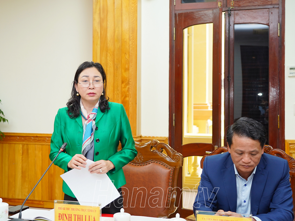 Đồng chí Đinh Thị Lụa, Phó Bí thư Thường trực Tỉnh ủy điều hành nội dung thảo luận tại hội nghị.