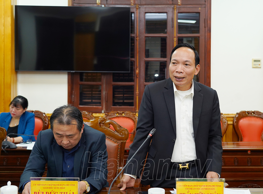 Đồng chí Nguyễn Văn Lượng, Ủy viên Ban Thường vụ Tỉnh ủy, Bí thư Thị ủy Duy Tiên phát biểu tại hội nghị.Lãnh đạo Tòa án nhân dân tỉnh phát biểu tại hội nghị.