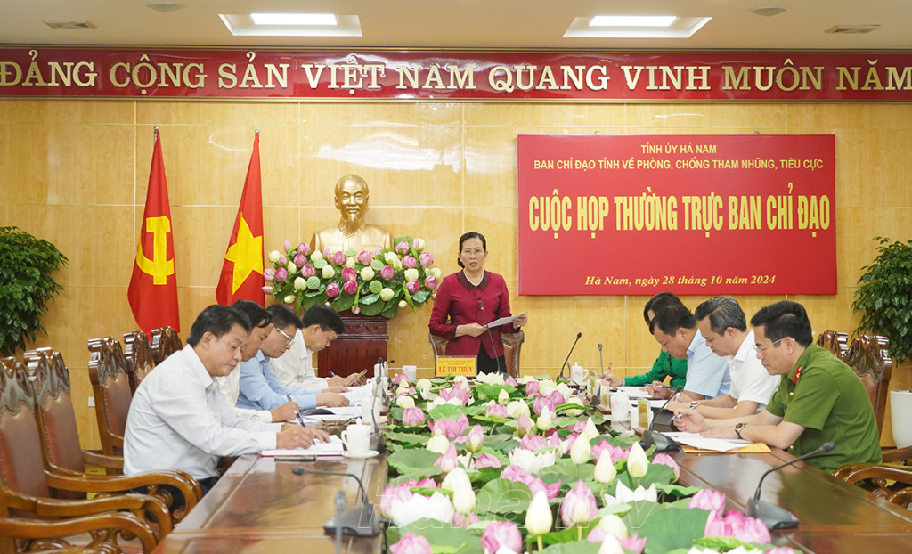 Sáng 28/10, Thường trực Ban Chỉ đạo (BCĐ) tỉnh về phòng chống tham nhũng, tiêu cực (PCTN,TC) tổ chức phiên họp đánh giá kết quả thực hiện công tác PCTN, TC thời gian qua, triển khai một số nhiệm vụ trọng tâm trong thời gian tới. Đồng chí Lê Thị Thủy, Ủy viên Trung ương Đảng, Bí thư Tỉnh ủy, Chủ tịch HĐND tỉnh, Trưởng BCĐ tỉnh về PCTN, TC chủ trì hội nghị. Dự phiên họp còn có đồng chí Đinh Thị Lụa, Phó Bí thư Thường trực Tỉnh ủy, Phó BCĐ tỉnh về PCTN, TC; các đồng chí Thường trực BCĐ và một số thành viên BCĐ tỉnh về PCTN, TC.