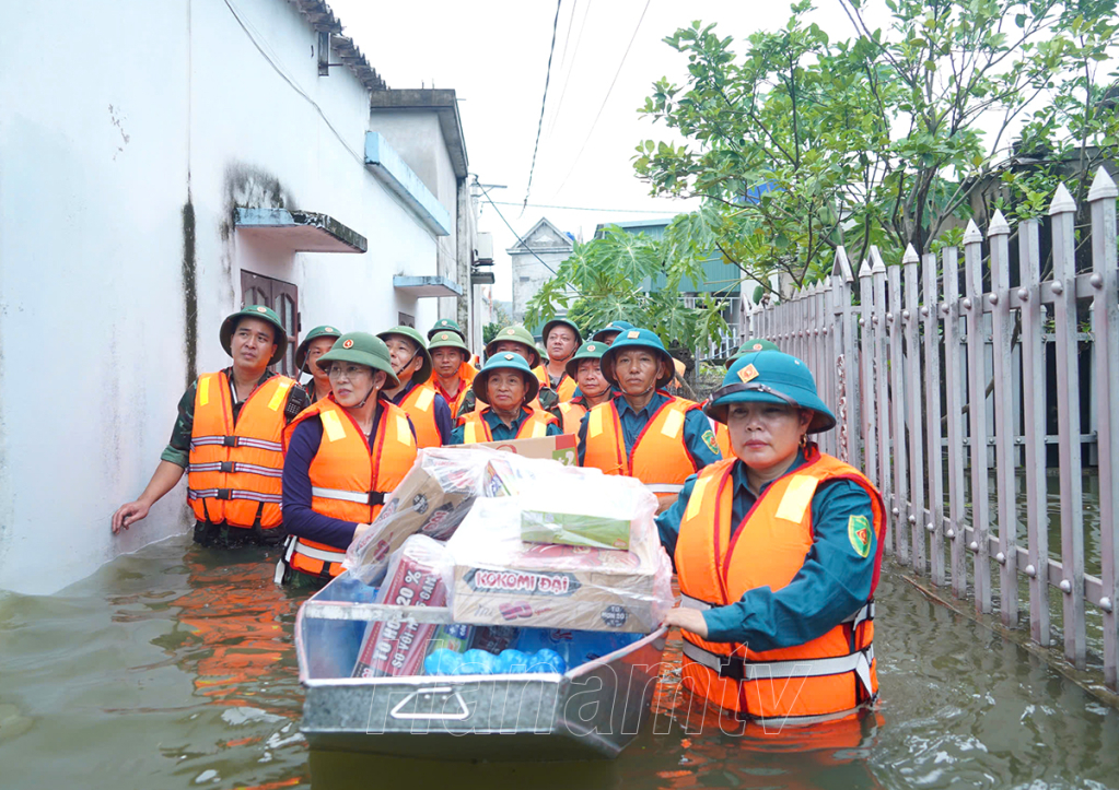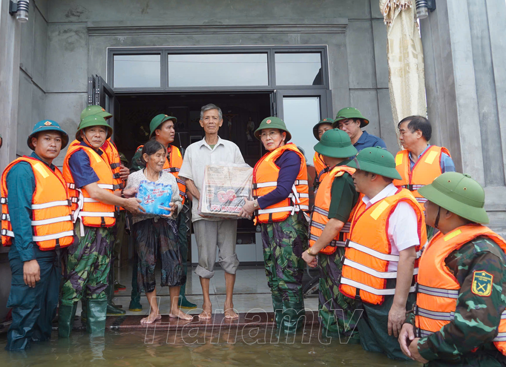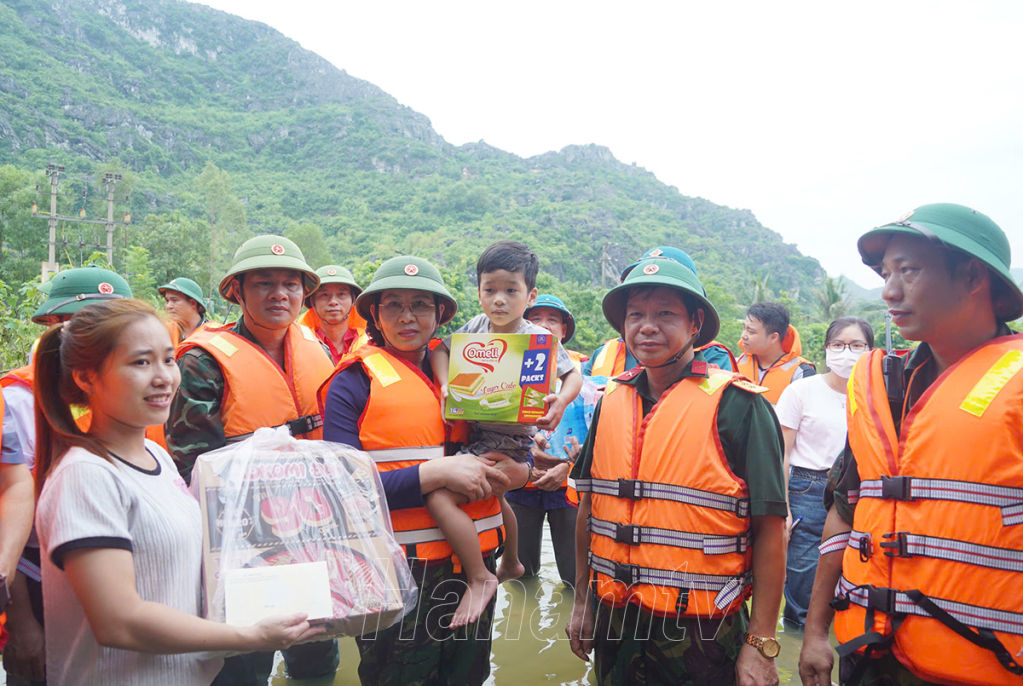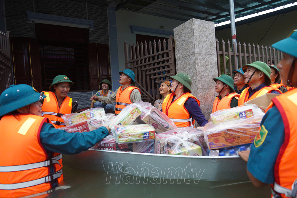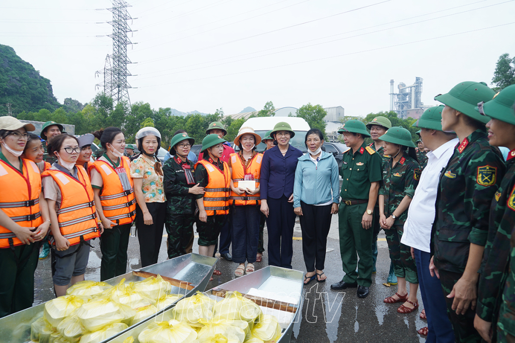 Đồng chí Lê Thị Thủy, Ủy viên Trung ương Đảng, Bí thư Tỉnh ủy, Chủ tịch HĐND tỉnh cùng các đồng chí lãnh đạo tỉnh, huyện và các ngành trực tiếp xuống thăm, tặng nhu yếu phẩm cho nhiều hộ dân bị ngập sâu tại thôn Trung Hiếu Hạ, xã Thanh Hải, huyện Thanh Liêm.