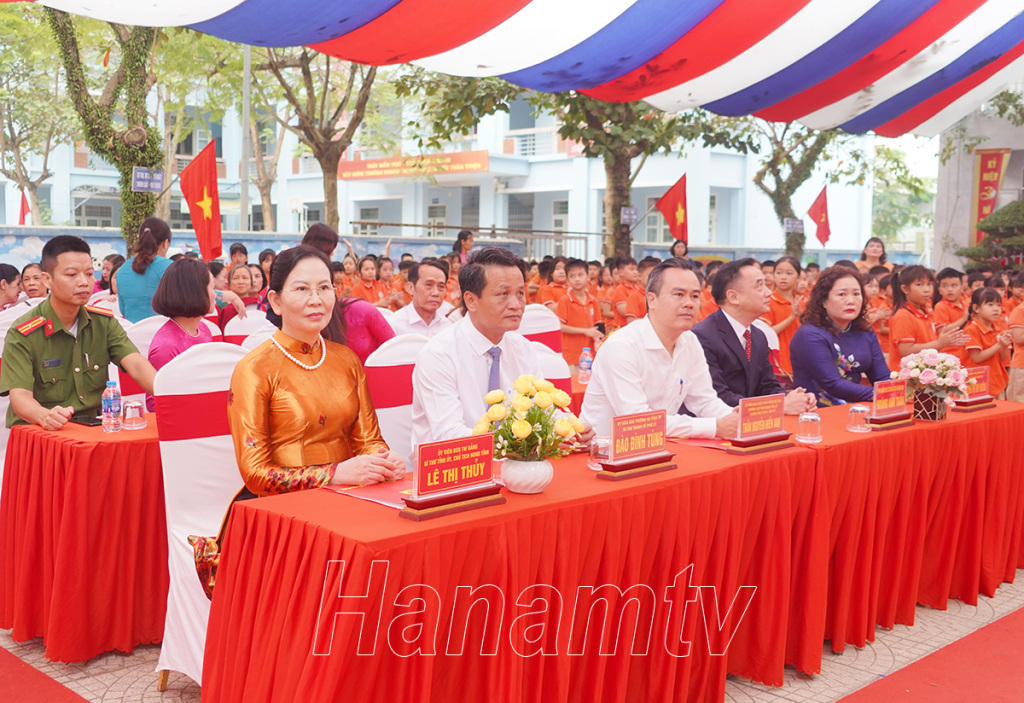 Đồng chí Bí thư Tỉnh ủy, Chủ tịch HĐND tỉnh tặng hoa chúc mừng tập thể cán bộ, giáo viên và học sinh nhà trường.Đồng chí Đào Đình Tùng, Ủy viên Ban Thường vụ Tỉnh ủy, Bí thư Thành ủy Phủ Lý tặng hoa chúc mừng nhà trường.