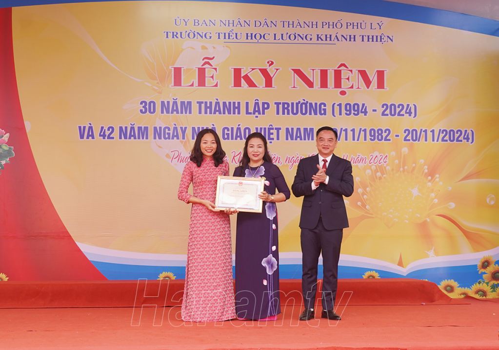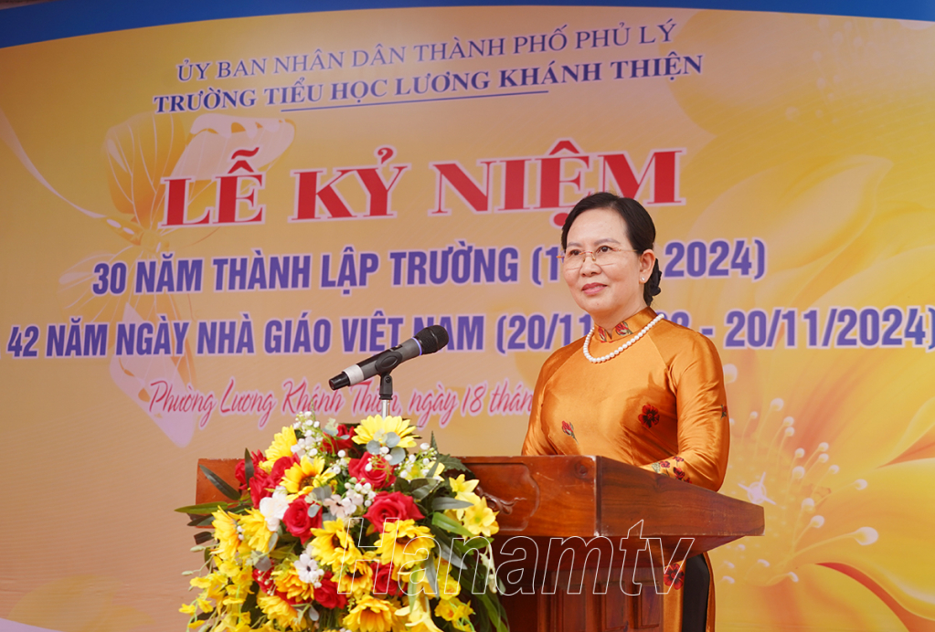 Sáng 18/11, Trường Tiểu học Lương Khánh Thiện, thành phố Phủ Lý tổ chức Lễ kỷ niệm 30 năm ngày thành lập và 42 năm ngày Nhà giáo Việt Nam 20/11. Đồng chí Lê Thị Thủy, Ủy viên Trung ương Đảng, Bí thư Tỉnh ủy, Chủ tịch HĐND tỉnh đã tới dự, chúc mừng tập thể cán bộ, giáo viên và học sinh nhà trường.