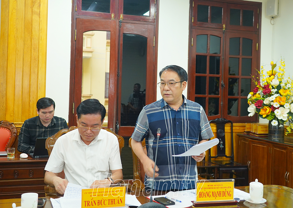 Đồng chí Bí thư huyện ủy Thanh Liêm báo cáo tình hình, kết quả công tác tiếp công dân, giải quyết khiếu nại tố cáo trên địa bàn huyện.
