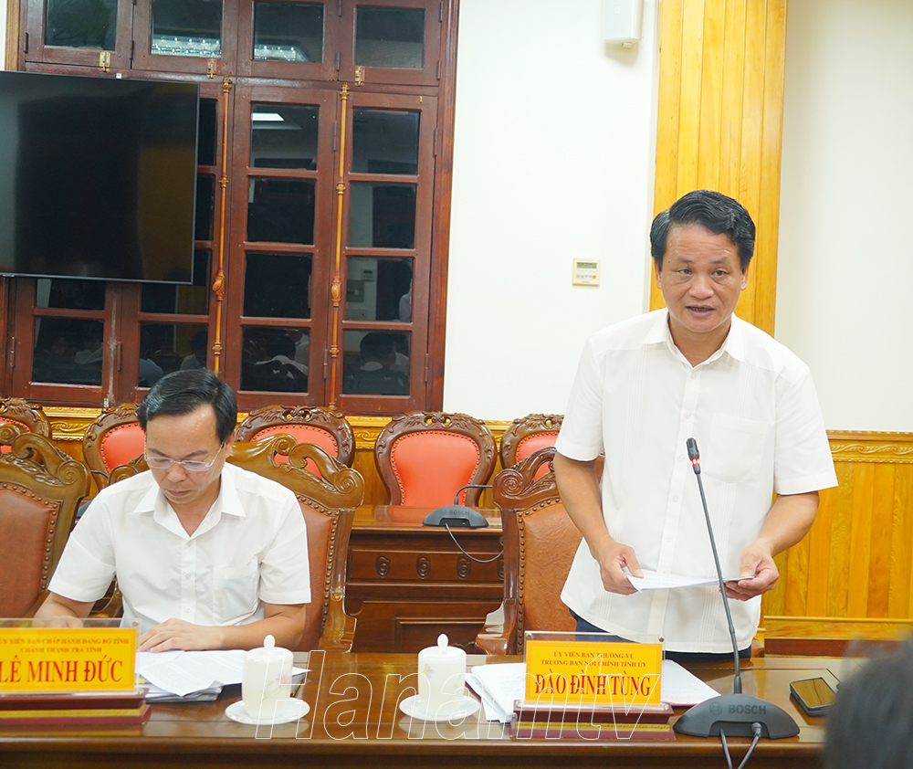 Đồng chí Trưởng Ban Nội chính Tỉnh ủy Đào Đình Tùng trình bày báo cáo tình hình, kết quả công tác tiếp dân, giải quyết khiếu nại tố cáo của công dân trong quý I/2024.