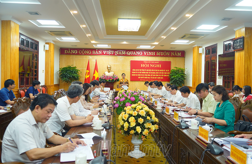 Sáng 17/4, đồng chí Lê Thị Thủy, Ủy viên Trung ương Đảng, Bí thư Tỉnh ủy, Chủ tịch HĐND tỉnh dự và chủ trì buổi làm việc với Bí thư các huyện ủy, thị ủy, thành ủy và thủ trưởng một số cơ quan, đơn vị về thực hiện nhiệm vụ chính trị và tình hình kết quả công tác tiếp công dân, giải quyết khiếu nại tố cáo (KNTC) quý I/2024.
