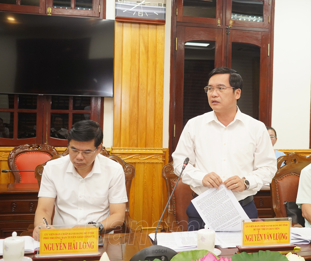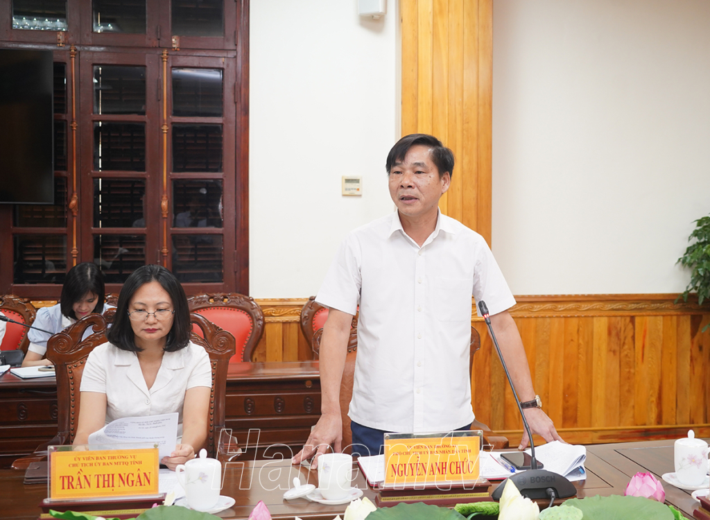 Dự buổi làm việc có các đồng chí: Nguyễn Anh Chức, Ủy viên Ban Thường vụ (BTV) Tỉnh ủy, Phó Chủ tịch Thường trực UBND tỉnh; Trần Thị Ngân, Ủy viên BTV Tỉnh ủy, Chủ tịch Ủy ban MTTQ tỉnh; đại diện lãnh đạo các ban, ngành, cơ quan, đơn vị có liên quan, Bí thư các huyện ủy, thị ủy, thành ủy.