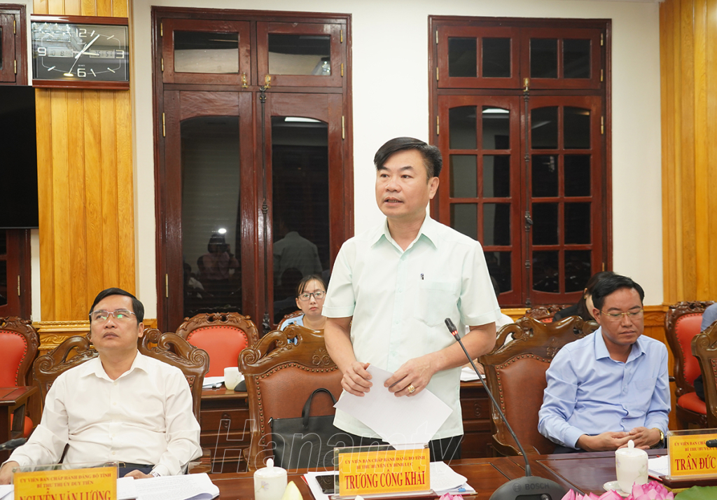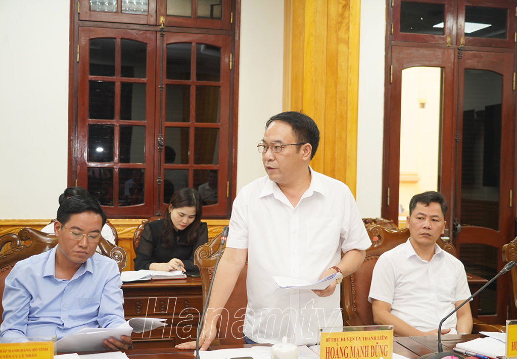 Đồng chí Trương Công Khải, Tỉnh ủy viên, Bí thư Huyện ủy Bình Lục phát biểu tại hội nghị.Đồng chí Hoàng Mạnh Dũng, Bí thư Huyện ủy Thanh Liêm phát biểu tại hội nghị.
