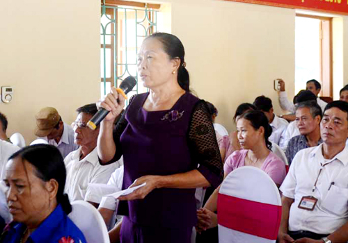 Người dân xã Chính Lý phát biểu ý kiến tại buổi đối thoại