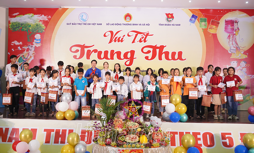 Nhân dịp này, Ban Tổ chức đã tặng 210 suất học bổng, mỗi suất trị giá 1 triệu đồng và quà Trung thu cho các em thiếu nhi tham dự chương trình; trong đó cá nhân đồng chí Bí thư Tỉnh ủy Lê Thị Thủy tặng 20 suất cho các em thiếu nhi có hoàn cảnh đặc biệt khó khăn.
