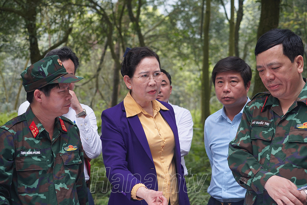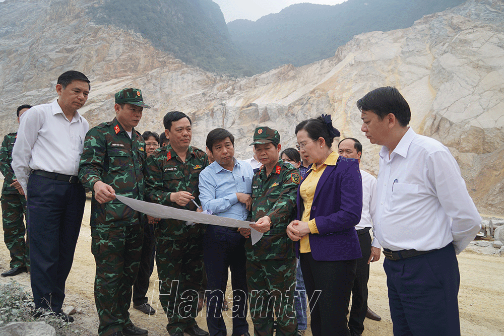 Đồng chí Bí thư Tỉnh ủy Lê Thị Thủy kiểm tra tiến độ xây dựng tuyến đường vào các công trình Quân sự