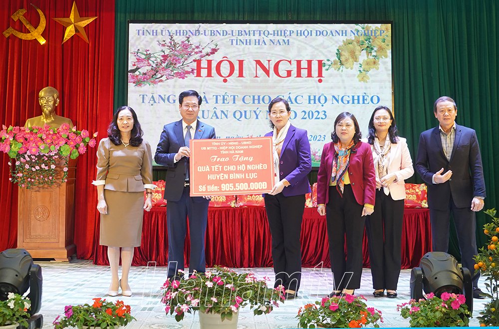 Với mục tiêu “không để người dân nào không có tết, không để bất cứ người nghèo, người có hoàn cảnh khó khăn nào không được quan tâm, hỗ trợ trong dịp tết Nguyên đán”, chuẩn bị đón Tết Quý Mão 2023, Tỉnh ủy, HĐND, UBND, Ủy ban MTTQ tỉnh đã kêu gọi các doanh nghiệp, nhà hảo tâm dành những sự quan tâm đặc biệt đến các gia đình chính sách, người có hoàn cảnh khó khăn. Đối với huyện Bình Lục, tỉnh hỗ trợ gần 1 tỷ đồng và hơn 18.000kg gạo cho 1.811 hộ nghèo, trong đó mỗi hộ nghèo được nhận 500.000 đồng và 5kg gạo nếp, 5kg gạo tẻ.