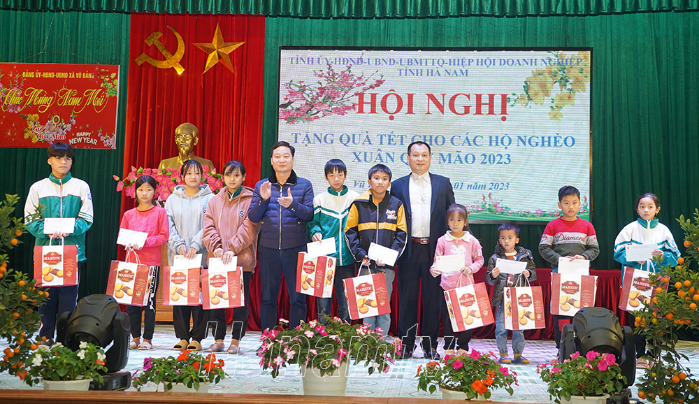 Đồng chí Bí thư Tỉnh ủy Lê Thị Thủy và đồng chí Trưởng Ban Tuyên giáo Tỉnh ủy Lê Thị Thanh Hà cùng lãnh đạo Hội Doanh nghiệp trẻ tỉnh trao tặng quà tết cho các hộ nghèo của xã Vũ Bản, huyện Bình LụcLãnh đạo Hội Doanh nghiệp trẻ tỉnh trao tặng quà cho 10 học sinh có hoàn cảnh khó khăn vươn lên trong học tập
