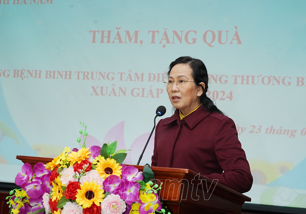Thăm, chúc Tết cán bộ, nhân viên, người lao động và các thương binh, bệnh binh đang được chăm sóc, điều trị tại Trung tâm điều dương thương binh Duy Tiên, đồng chí Bí thư Tỉnh ủy Lê Thị Thủy trân trọng bày tỏ sự tri ân sâu sắc đối với những cống hiến, hy sinh của các thương binh, bệnh binh nặng đang được chăm sóc, điều trị tại Trung tâm. Đồng thời ghi nhận, biểu dương những thành tích mà Trung tâm đạt được trong thời gian qua. Khẳng định suốt hơn 67 năm qua, Trung tâm Điều dưỡng Thương binh Duy Tiên đã thực sự trở thành ngôi nhà chung ấm áp của 55 thương, bệnh binh ở 13 tỉnh thành trong cả nước. Dù còn nhiều khó khăn nhưng các cán bộ nhân viên của Trung tâm đã nỗ lực cùng với Đảng, Nhà nước và nhân dân thực hiện tốt đạo lý “uống nước nhớ nguồn” và các chính sách dành cho người có công.