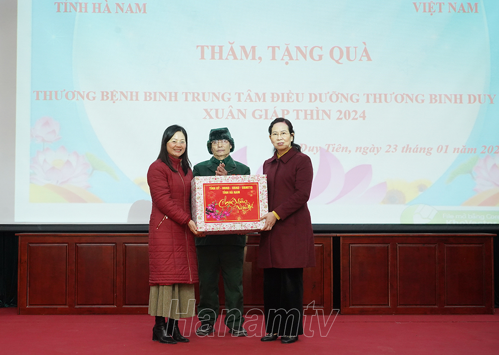 Nhân dịp chuẩn bị đón xuân mới Giáp Thìn 2024, sáng 23/1, đồng chí Lê Thị Thủy, Ủy viên Trung ương Đảng, Bí thư Tỉnh ủy, Chủ tịch HĐND tỉnh đã tới thăm, chúc Tết, tặng quà tại Trung tâm điều dưỡng thương binh Duy Tiên; tặng quà các hộ nghèo, gia đình chính sách trên địa bàn thị xã. Cùng đi có lãnh đạo Sở LĐTB&XH, Thị xã Duy Tiên.