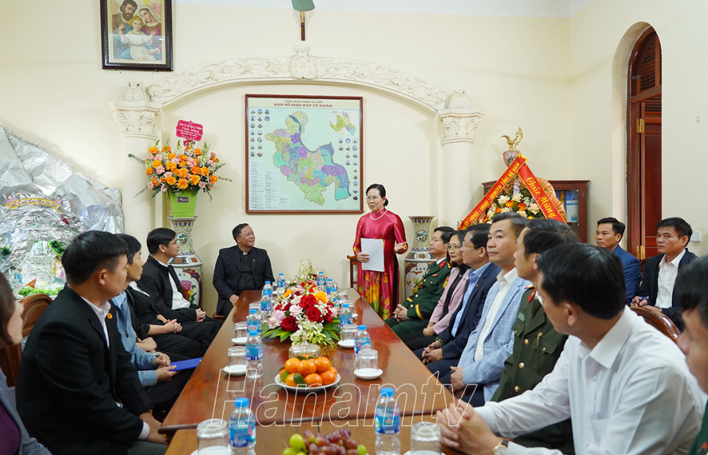 Nhân dịp Lễ Giáng sinh 2024, chiều 20/12, đồng chí Lê Thị Thủy, Ủy viên Trung ương Đảng, Bí thư Tỉnh ủy, Chủ tịch HĐND tỉnh đến thăm, tặng quà, chúc mừng Linh mục Phạm Văn Dũng, Quản hạt Lý Nhân, Chính xứ Giáo xứ Cát Lại, xã Bình Nghĩa, huyện Bình Lục và toàn thể chức sắc, bà con giáo dân trong Giáo xứ.