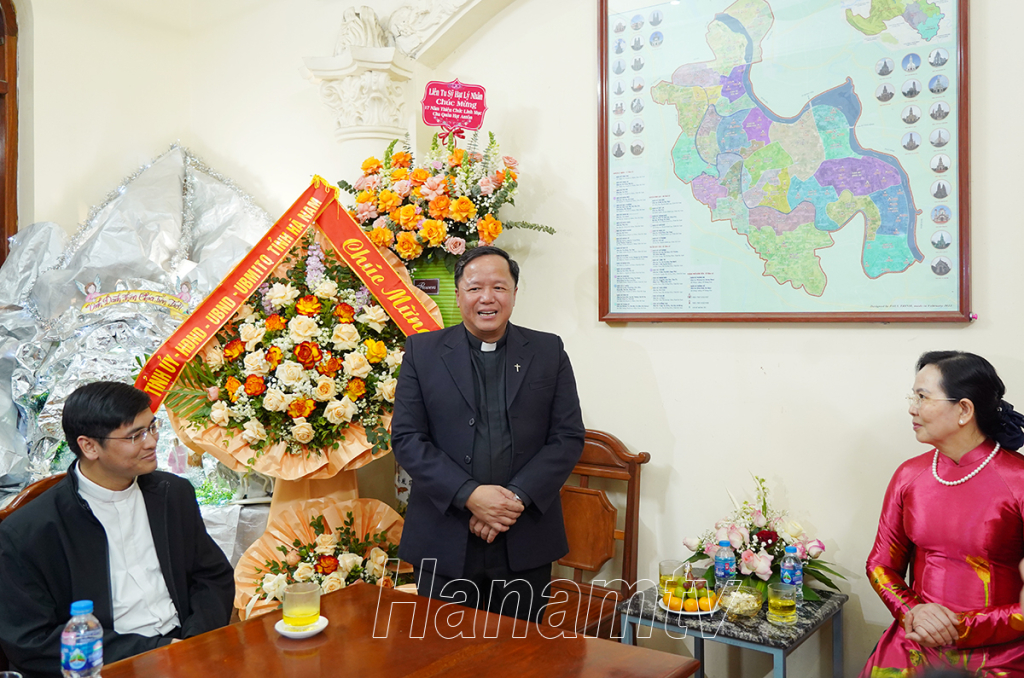 Thay mặt Tỉnh ủy, HĐND, UBND, Ủy ban MTTQ tỉnh, đồng chí Bí thư Tỉnh ủy gửi lời chúc mừng tốt đẹp đến các Linh mục Phạm Văn Dũng, quản hạt Lý Nhân và các vị chức sắc, chức việc cùng toàn thể bà con giáo dân trên địa bàn tỉnh nói chung và Giáo xứ Cát Lại nói riêng đón mùa Giáng sinh năm 2024 và năm mới 2025 an lành, hạnh phúc, vui tươi, tràn đầy hồng ân của Thiên Chúa.