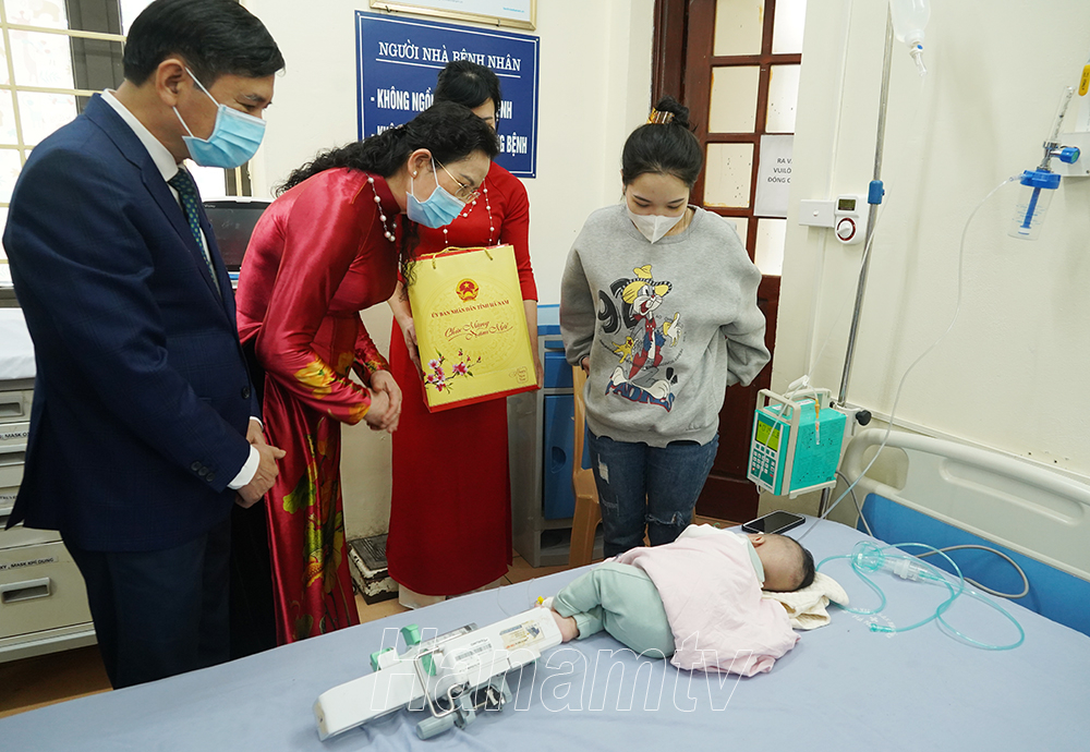 Đồng chí Bí thư Tỉnh ủy Lê Thị Thủy thăm hỏi, động viên, tặng quà các bệnh nhi đang điều trị tại Bệnh viện đa khoa tỉnh.
