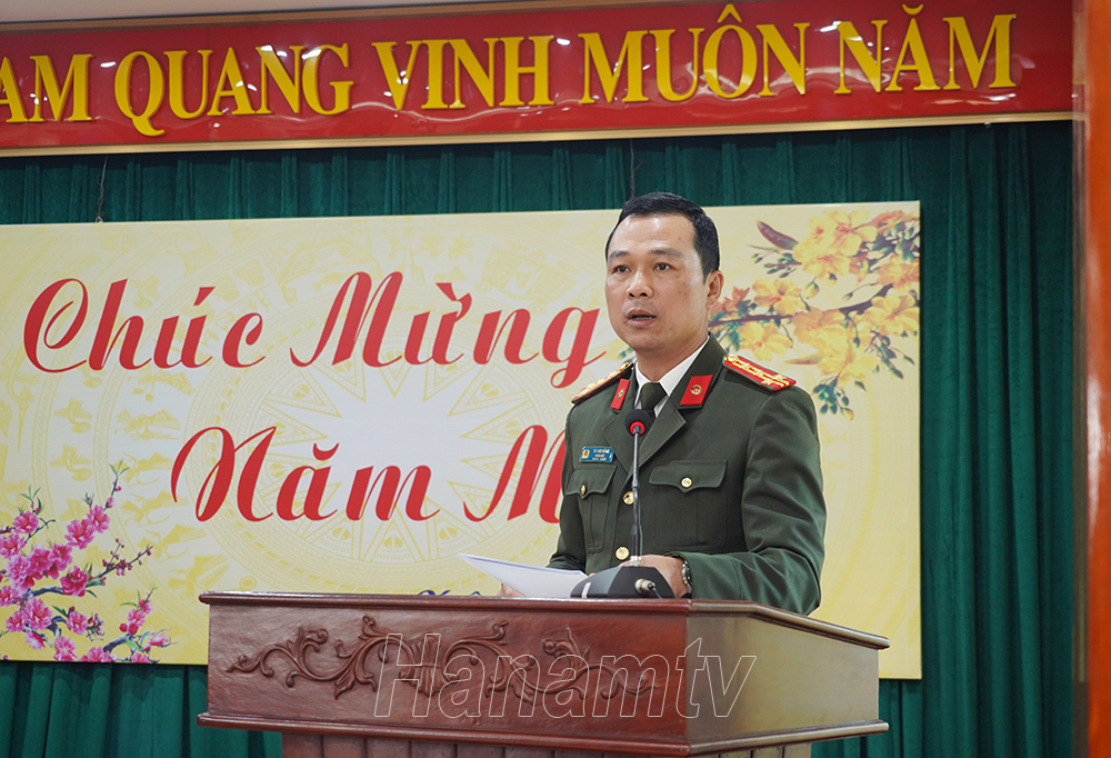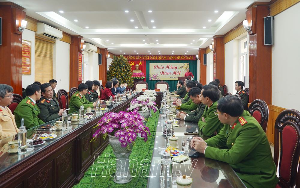 Nhân dịp Tết cổ truyền của dân tộc, đồng chí Bí thư Tỉnh ủy gửi lời chúc mừng năm mới đến toàn thể cán bộ, chiến sĩ và gia đình; đồng chí mong muốn tập thể Đảng ủy, Ban Giám đốc, cán bộ, chiến sĩ Công an tỉnh tiếp tục phát huy những kết quả đã đạt được, khắc phục những tồn tại, hạn chế; đoàn kết, thống nhất, chung sức, đồng lòng, vượt qua khó khăn, không ngừng đổi mới tư duy, cách nghĩ, cách làm để hoàn thành xuất sắc các mục tiêu, chỉ tiêu trên các lĩnh vực mà Nghị quyết số 38 ngày 28/11/2023 của Ban Thường vụ Tỉnh ủy về nhiệm vụ đảm bảo an ninh, trật tự, xây dựng lực lượng Công an Hà Nam năm 2024 đã đề ra.